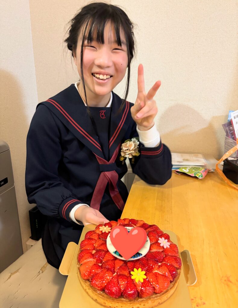 12歳のお誕生日をキャラクター苺のタルトでお祝いいただきました✨
