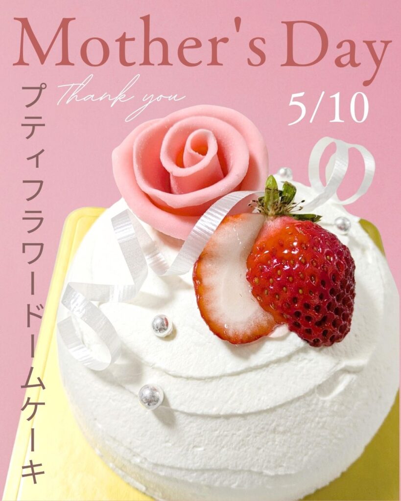 ふんわりスポンジと口どけなめらかな生クリーム、甘酸っぱいいちごを使用した、特別な母の日限定ケーキです。